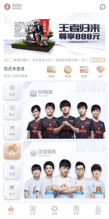 抢先预览泛亚电竞手机应用程序的应用界面